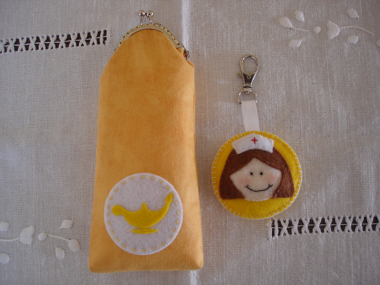 Este conjunto de porta lápis e porta chaves foi criado a pedido de uma enfermeira.