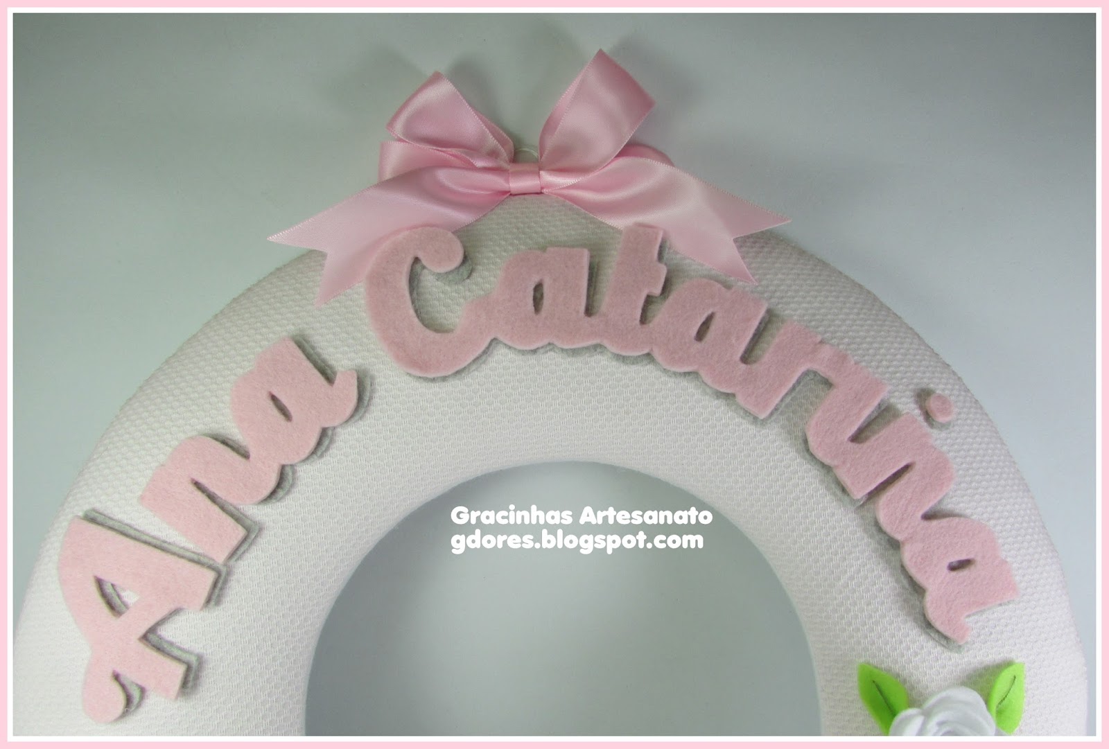 Detalhes de cinza estão presentes na grinalda que leva o nome da bebé, no móbile musical de berço e também no varal que decora o berço. Aqui estão as fotos: